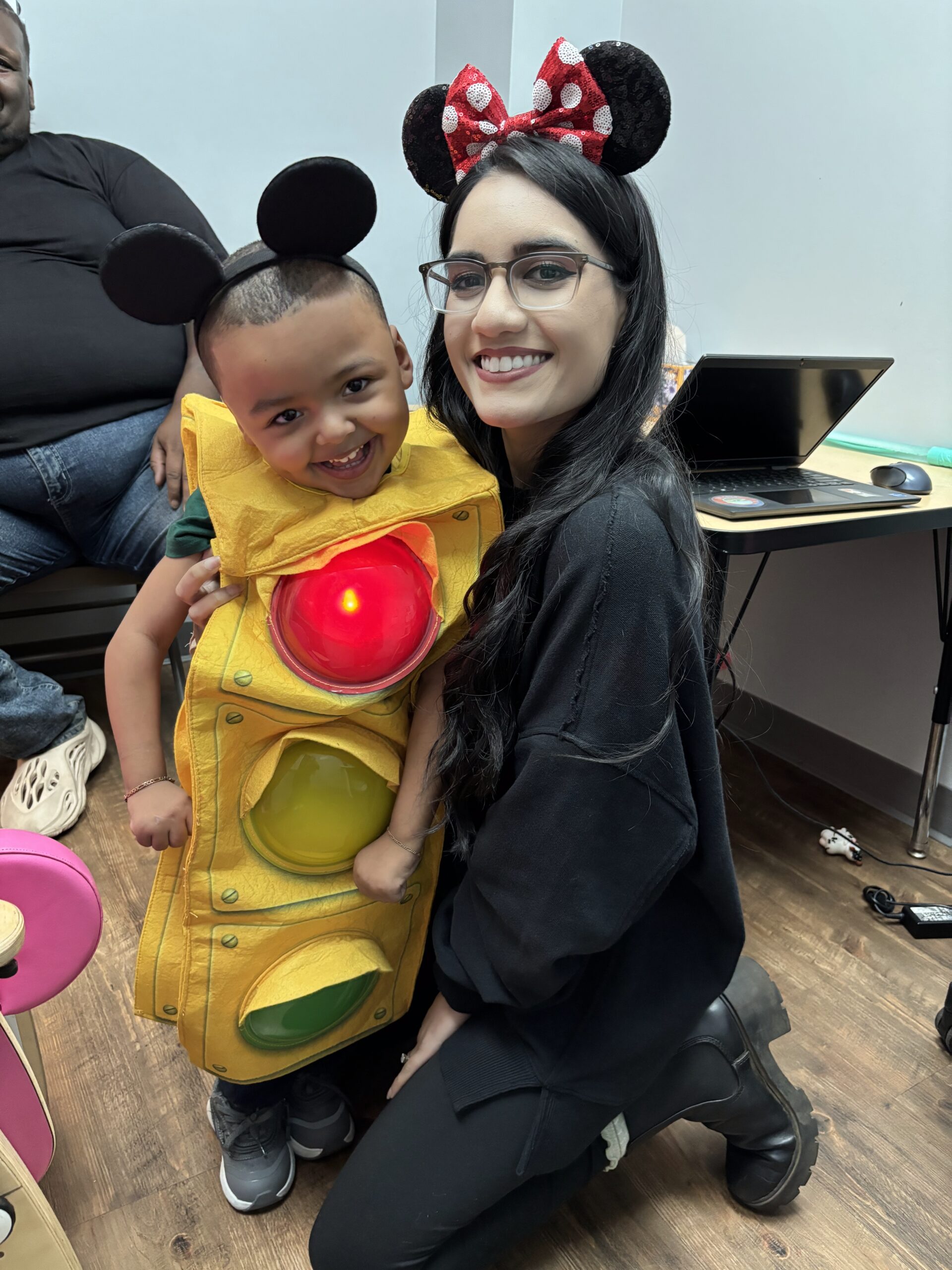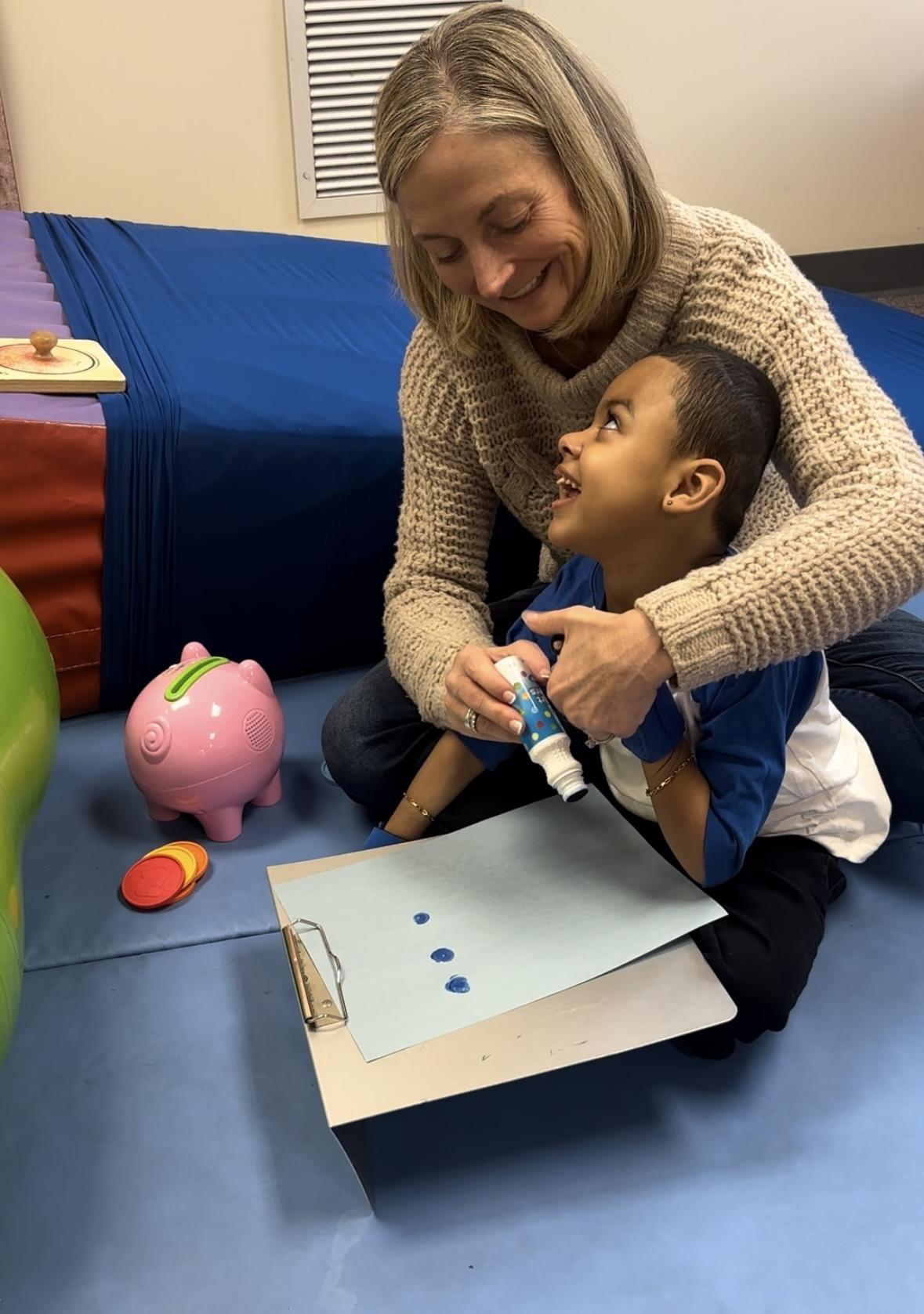 Jayvion smiling with Ms. Lori, his occupational therapist.